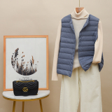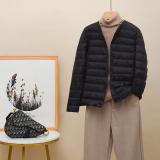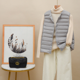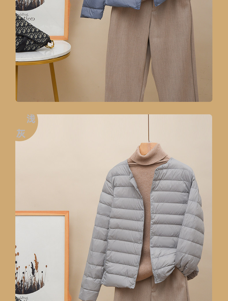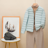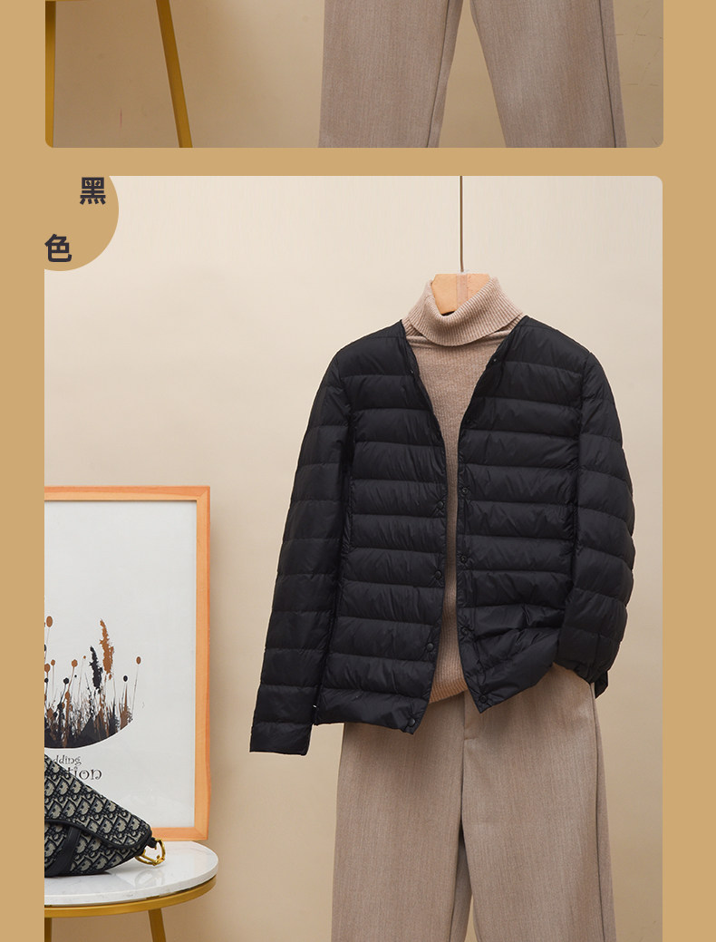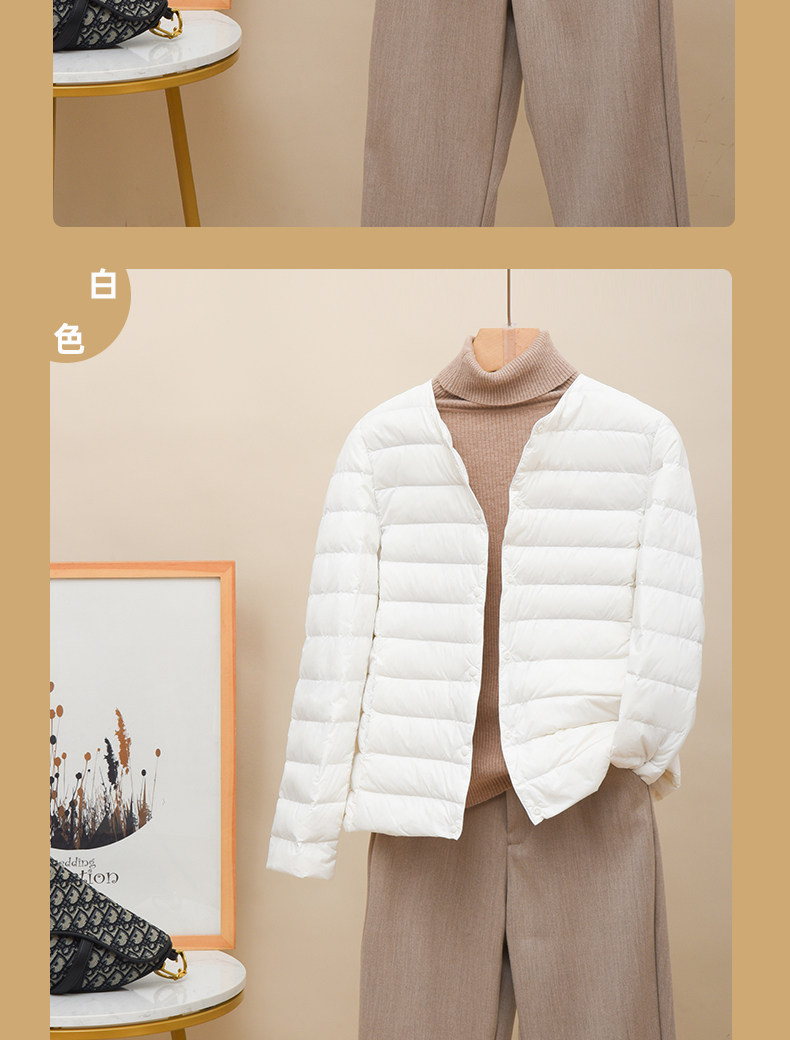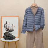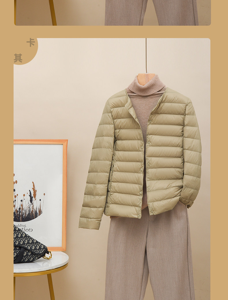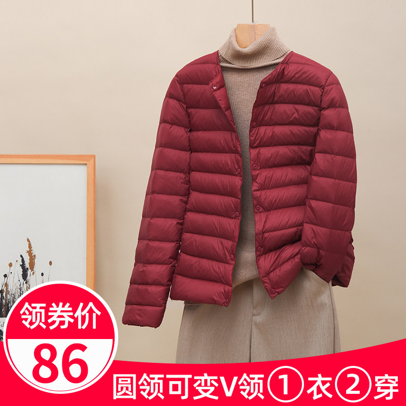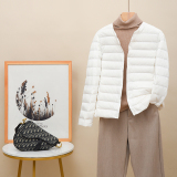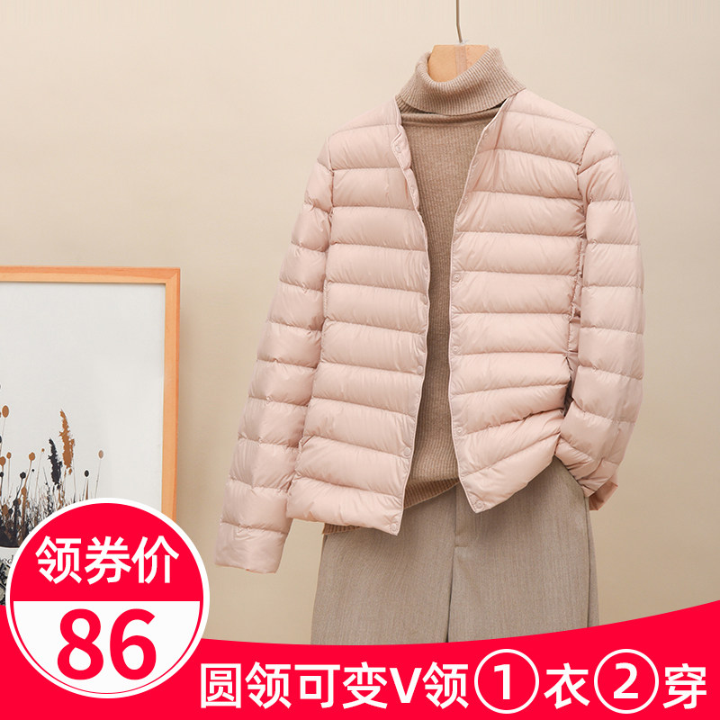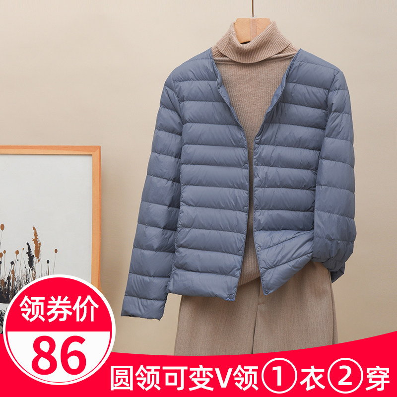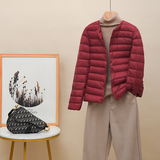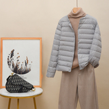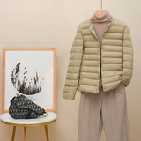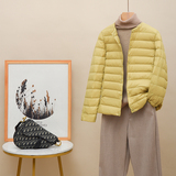 Новая коллекция Тонкий пуховик женский белый утиный пух осень-зима Сезонный круглый воротник V воротник два большой размер приталенный короткий куртка