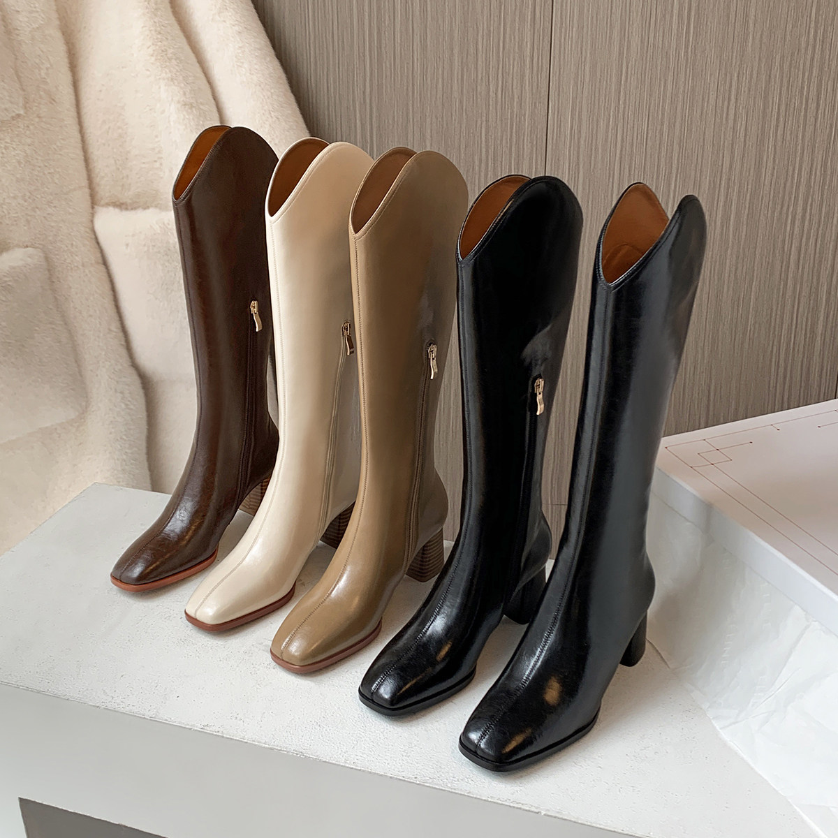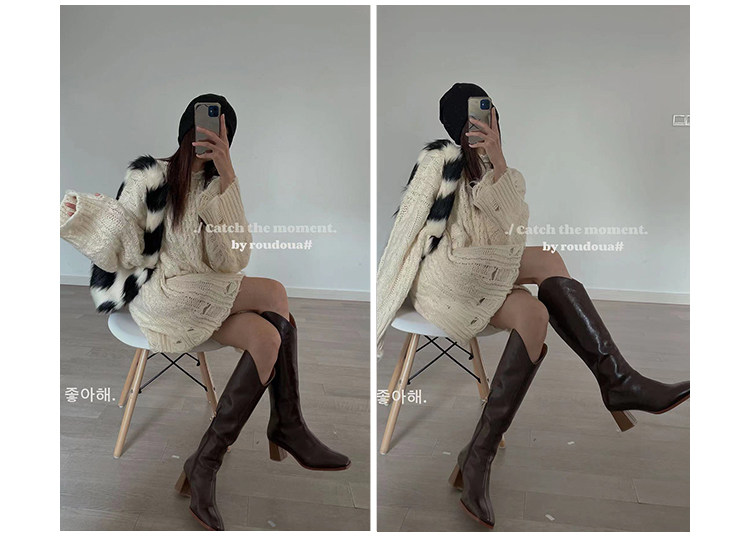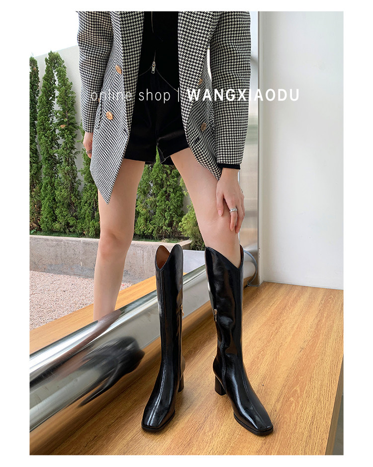 - Второй рост высокая из на высоком каблуке Сапоги, широкий каблук Это не устает.