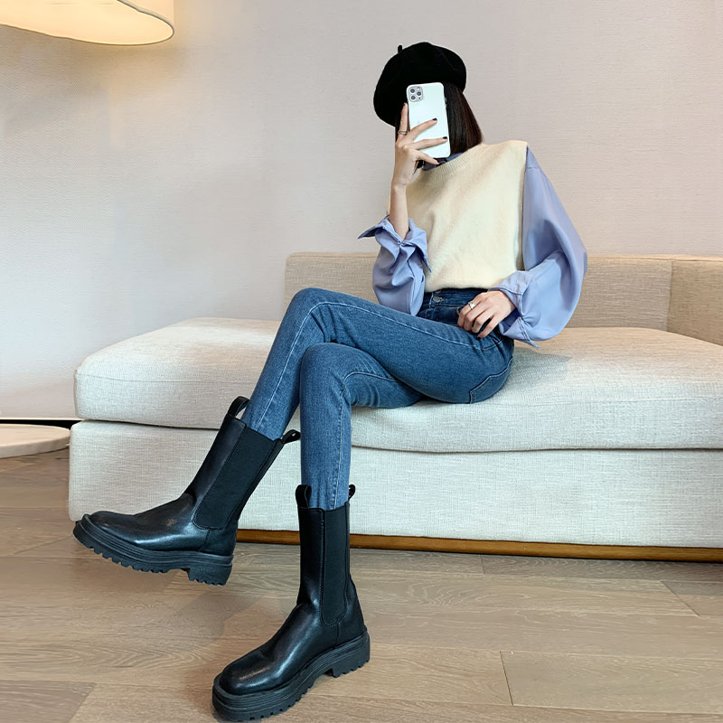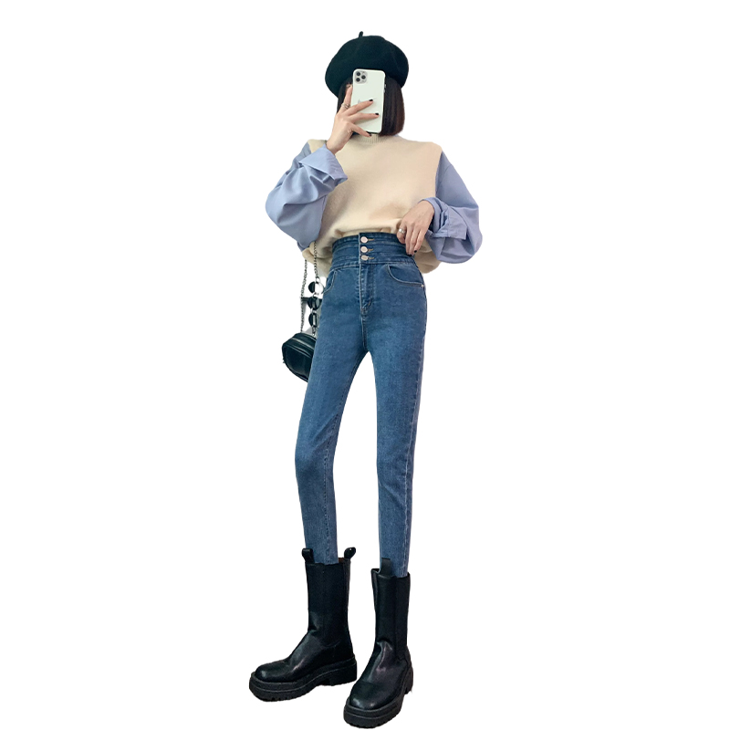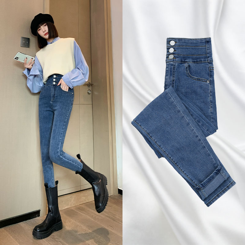 Высокая Талия джинсы женские штаны черный Тугая нога приталенный Карандаш 2022. новая коллекция демисезонный 2021