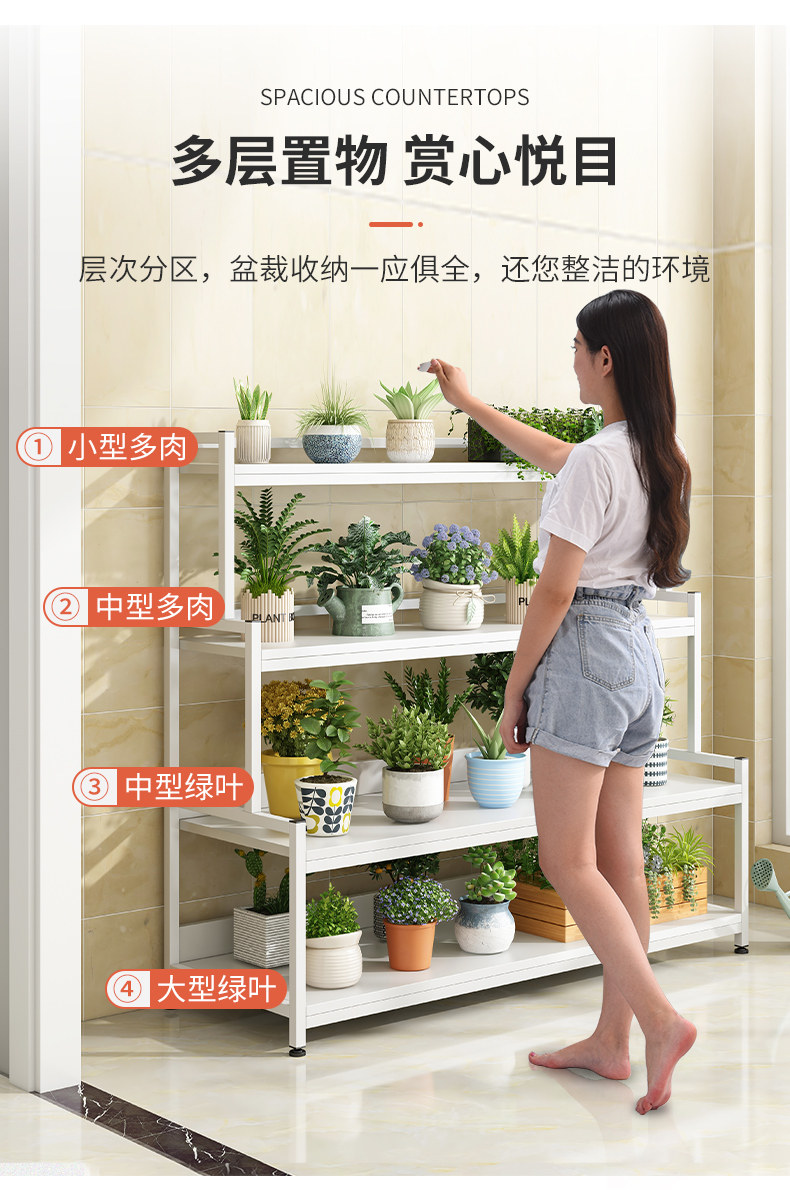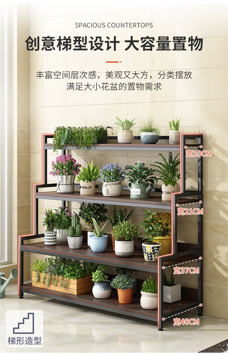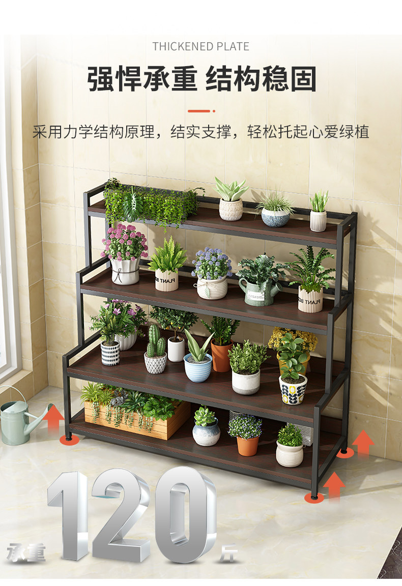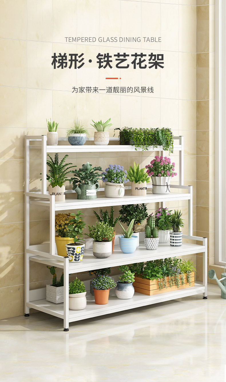 Цветочная рамка Yangai Shelf Кованый Железный Цветочный горшок Стойки Жилая комната Пол Простой поколение Крытая цветочная полка ступенчатая