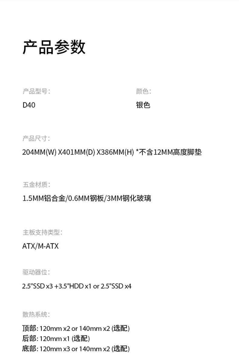 D40 белый ( один лапша сторона через)D40 белый + белый Вентилятор 3.D40 белый + ARGB Вентилятор контроля температуры 3D40 белый +FR901 белый ARGB * 3.D40 белый +CR1000 белый версияD40 белый +CR1000 белый версия +3 белый поклонникD40 белый + Легкая молодежь 240 белый Аргб водяной охлаждениеD40 белый +650W белый источник питанияD40 серебряный + Ослепляет цвет Вентилятор 3.D40 серебряный + ARGB Вентилятор контроля температуры 3
