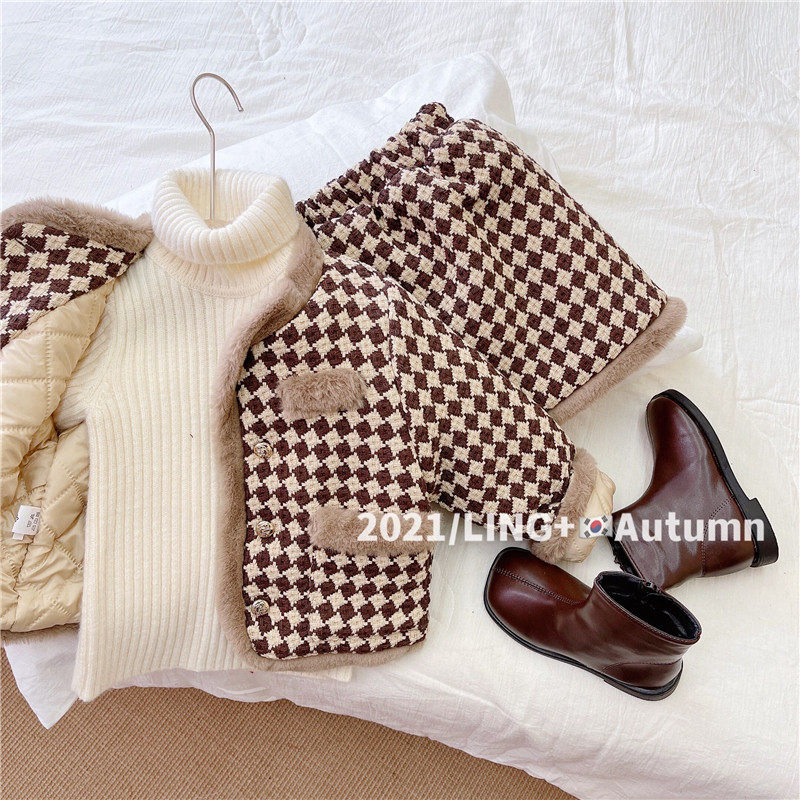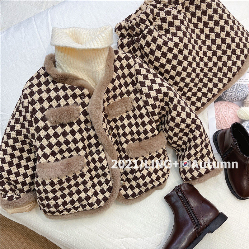 2022 на девочку Пакет демисезонный новая коллекция Маленький ветер корейская версия детские замшевый утепленный комплект детские западный стиль демисезонный одежда