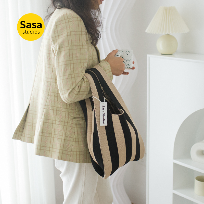 Новая коллекция Японские и Хан Xiaoying Качественная рука пакет полосатый принт вязанные Тотет пакет Большая емкость низ пакет женский пакет осень-зима