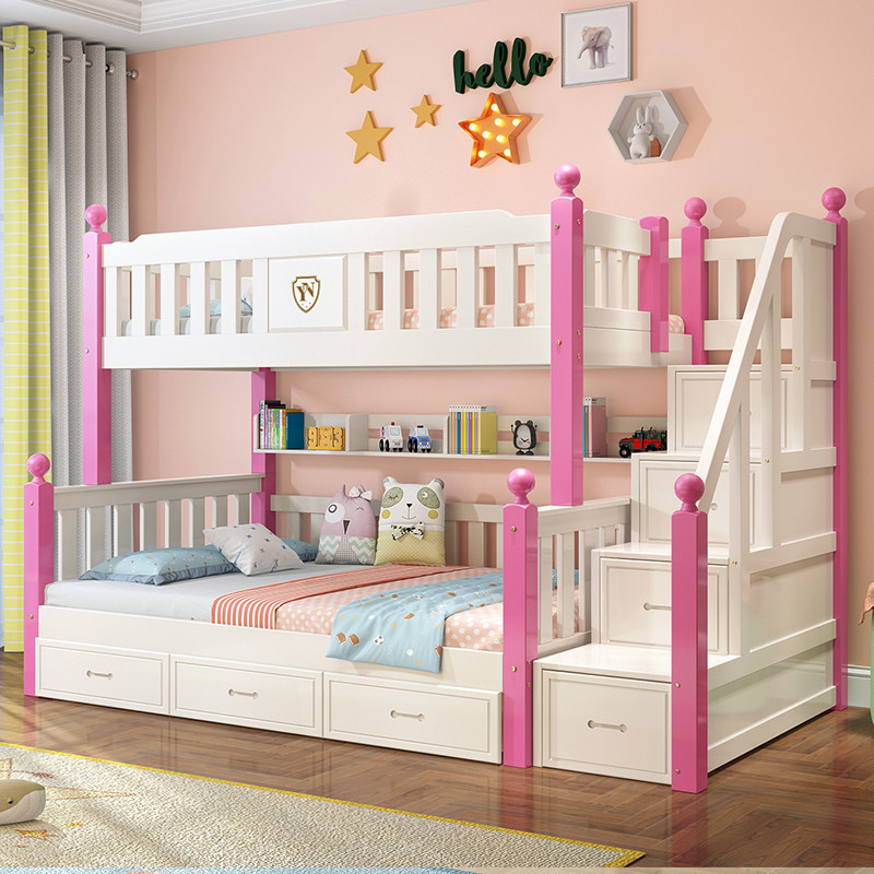 Полностью Твердая древесина верх и низ кровать двухслойный кровать высокая Многофункциональная комбинация с низкой кроватью детские Кровать женщина BRY. верх и низ Постельное белье