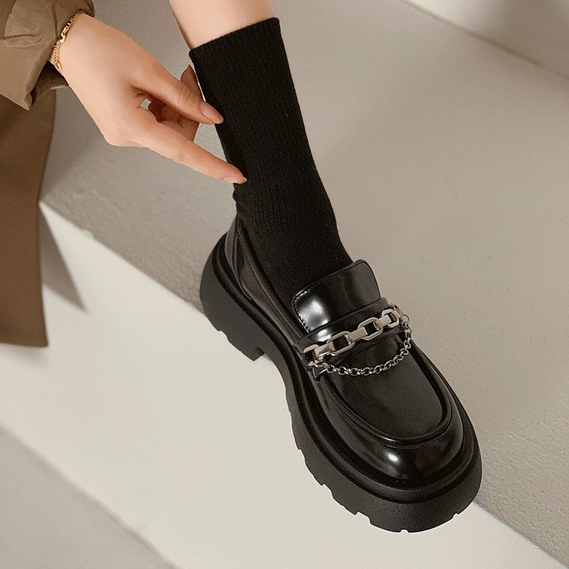 Laofu Обувь Женский 2022 демисезонный новая коллекция винтаж Дизайн сексуально толстая конец черный винтаж Небольшой кожаная обувь Ребенок