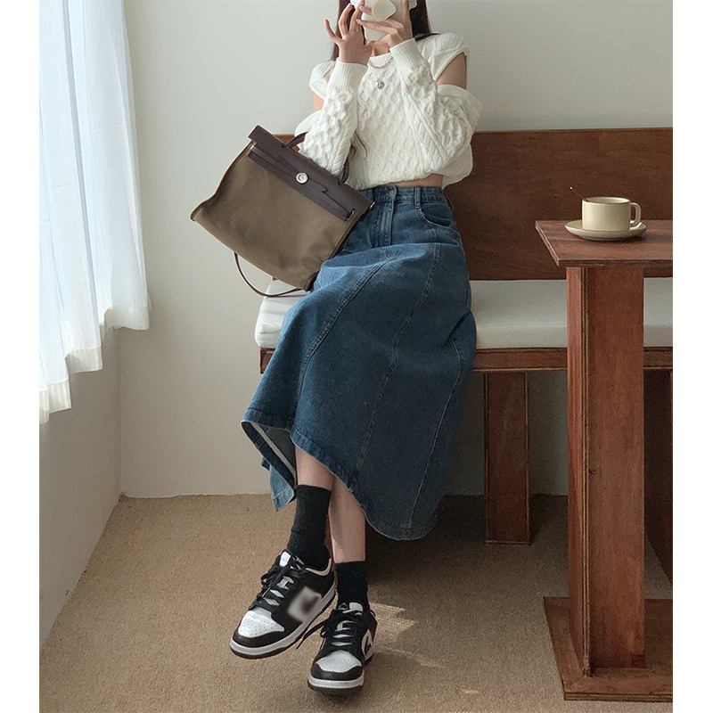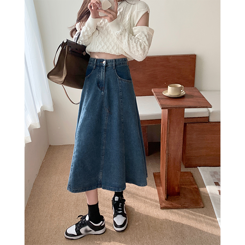 Весенняя приталенная джинсовая юбка, тренд сезона, А-силуэт, коллекция 2023, высокая талия, подходит для подростка, в корейском стиле