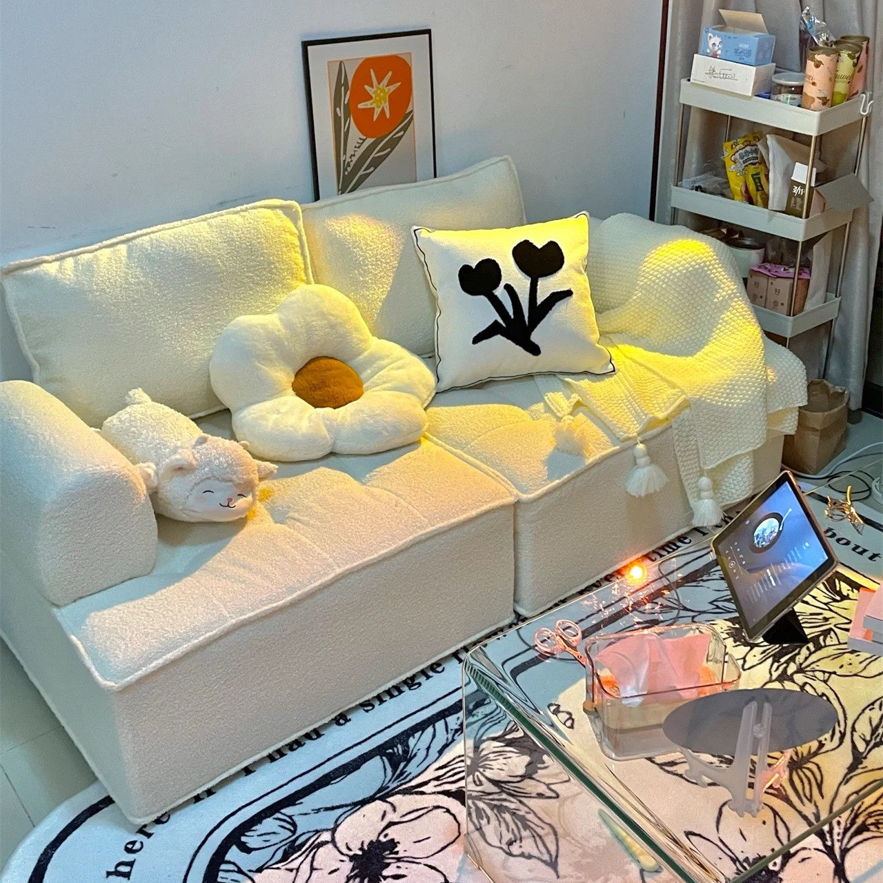 Лэмб, Тофу, Ленивый диван Татами Балкон Гостиная гостиная для отдыха Квадрат один Двойная комбинация маленький диван
