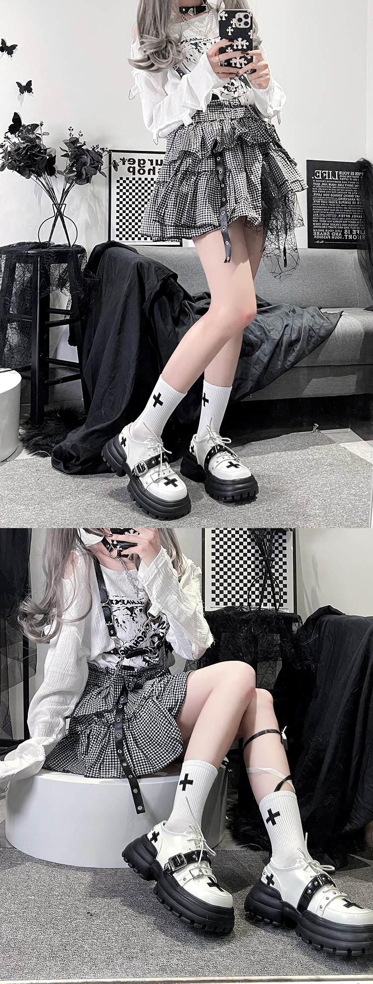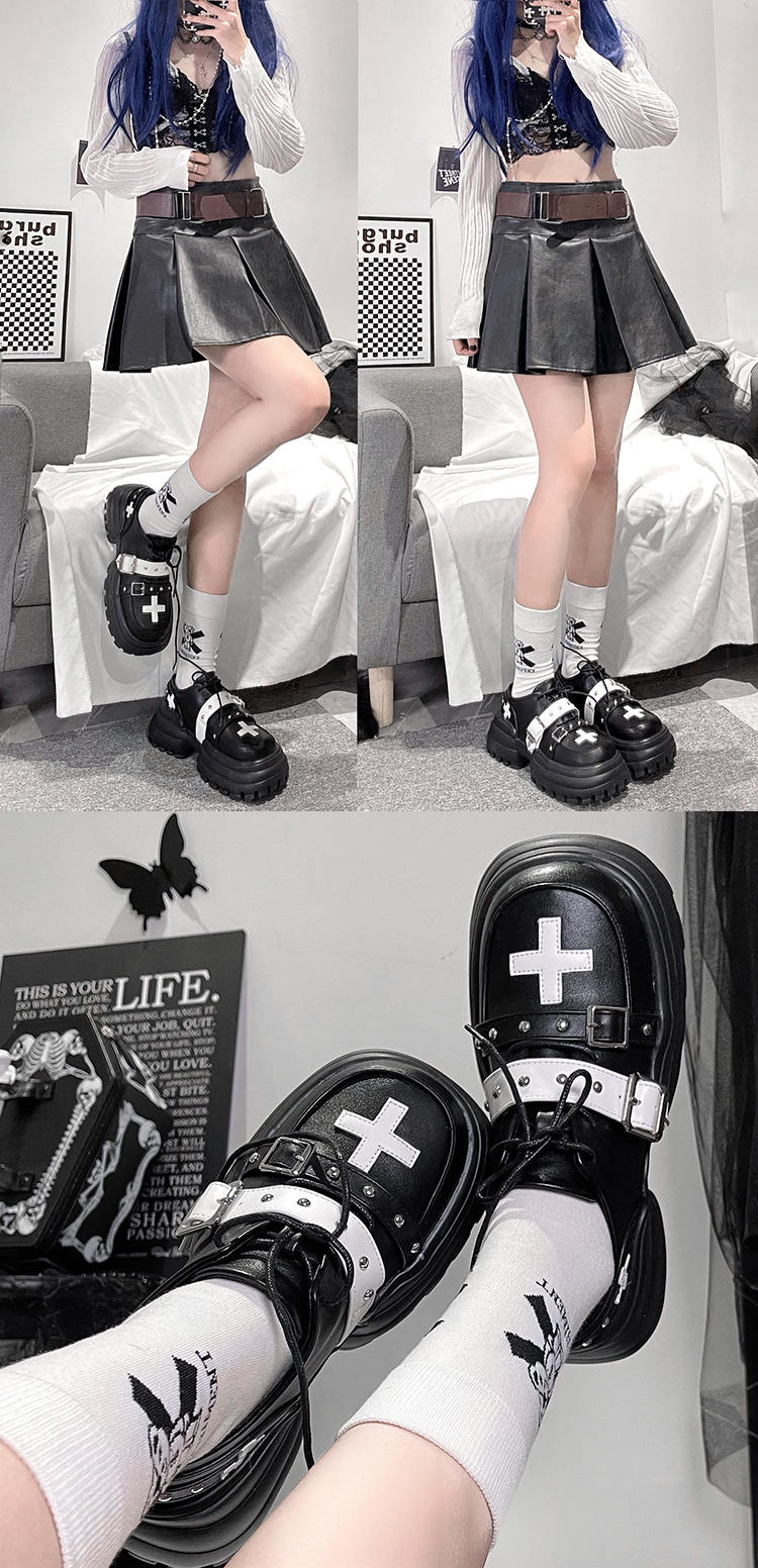Молиться за десять слово Оригинальный день на плоской подошве Круглая девушка Лолита Обувь сладкий панк толстая Легкая обувь кожаная обувь женский