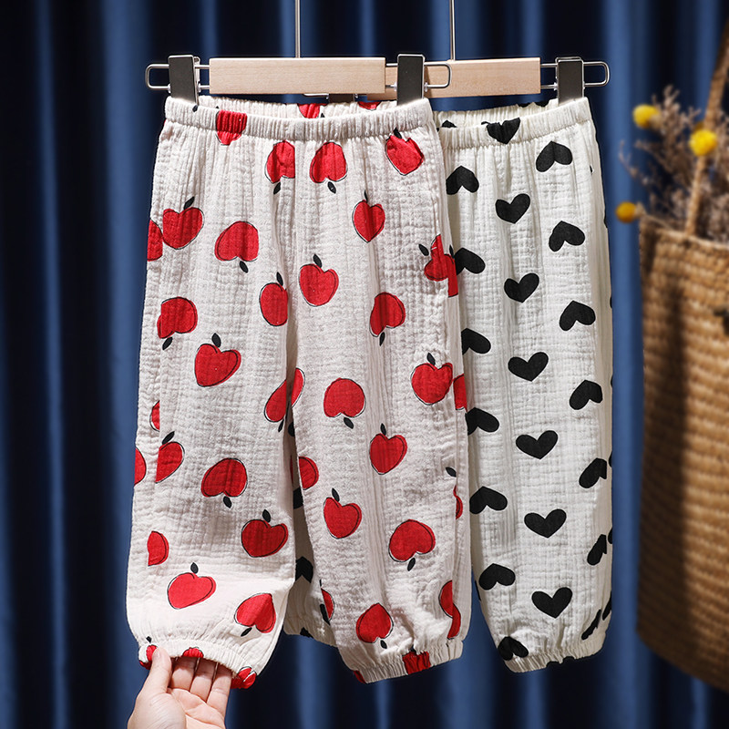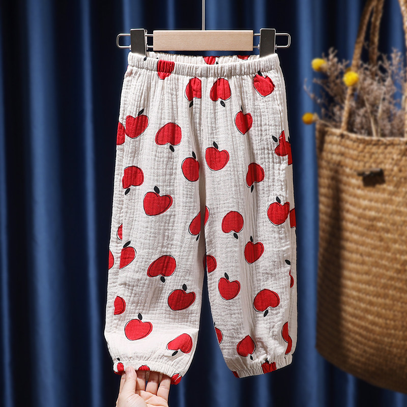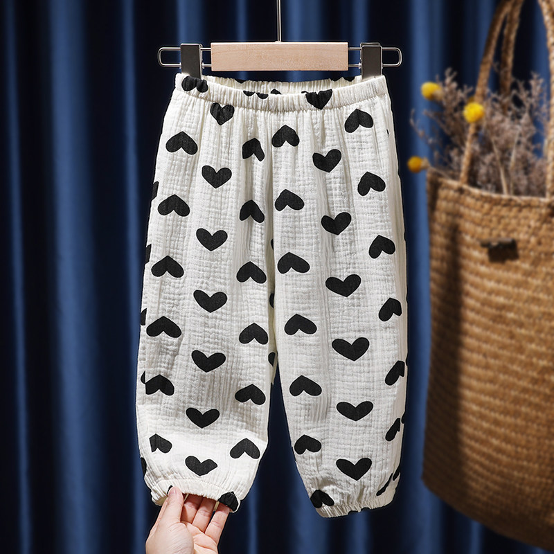 2022 новый Весна и лето корейский на младенца Гавань свет Штаны мужские и женские детские Распечатать свободу для отдыха Брюки Брюки Москитные штаны
