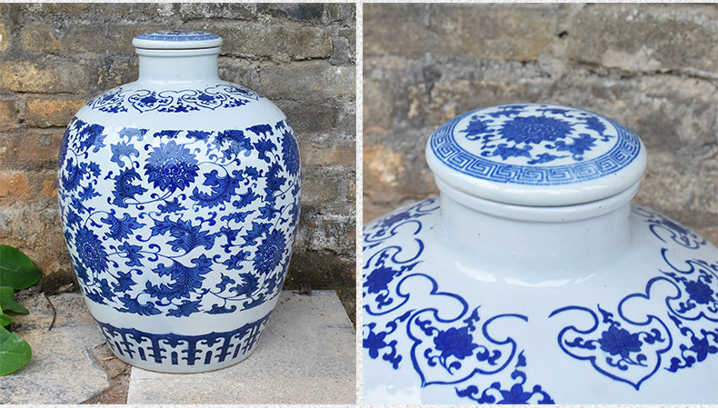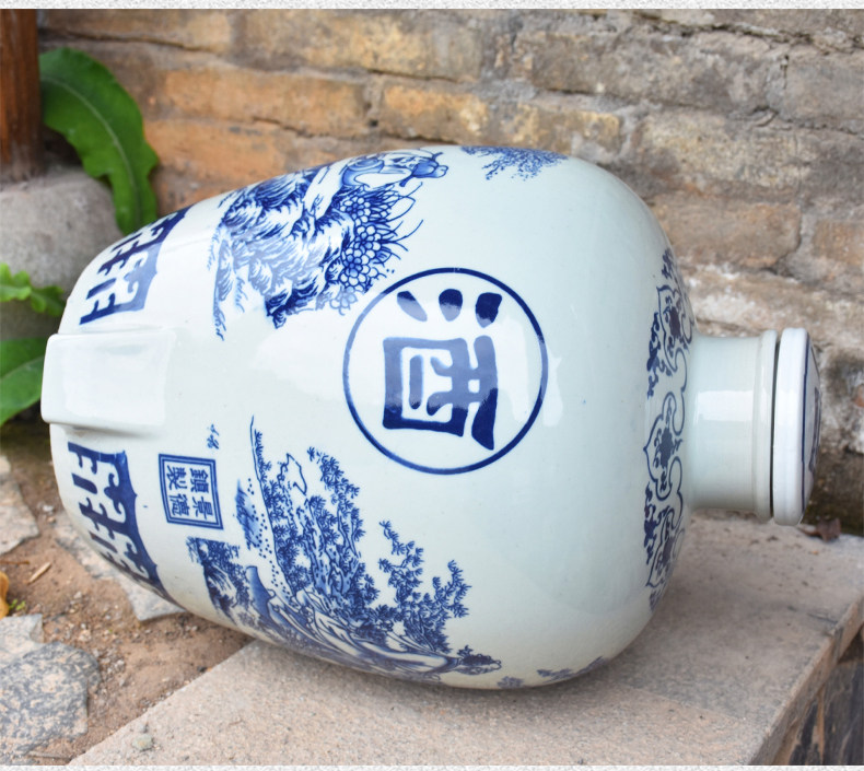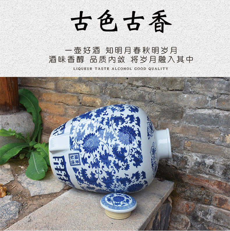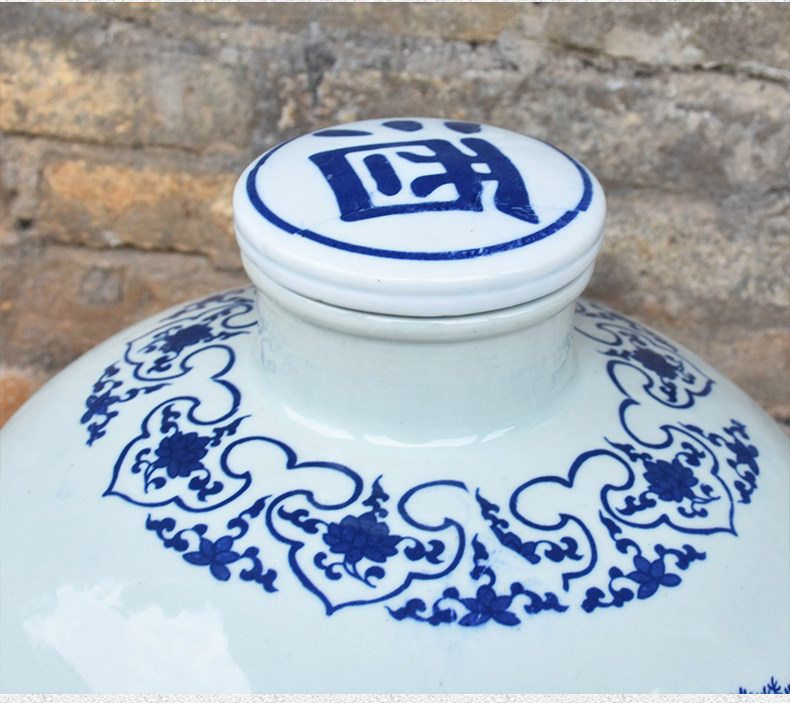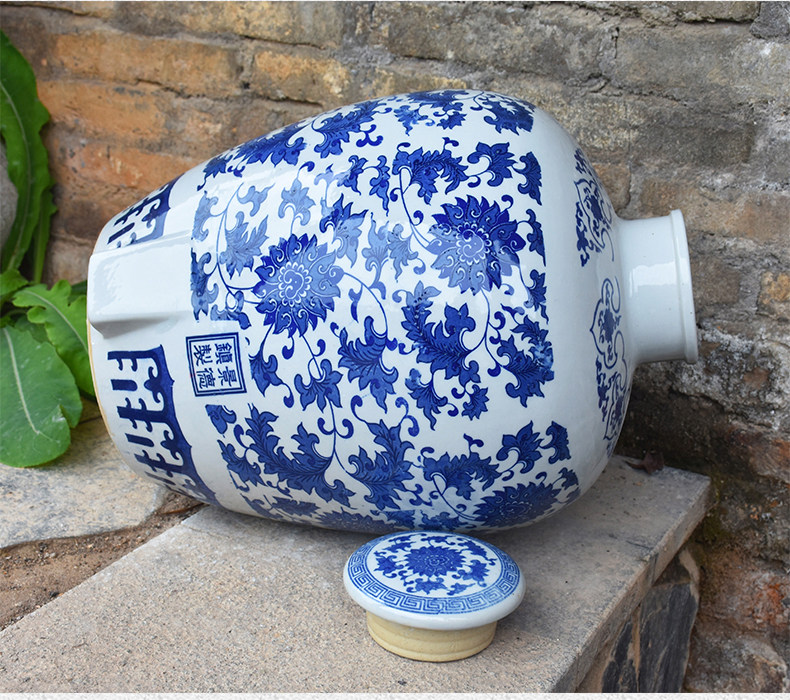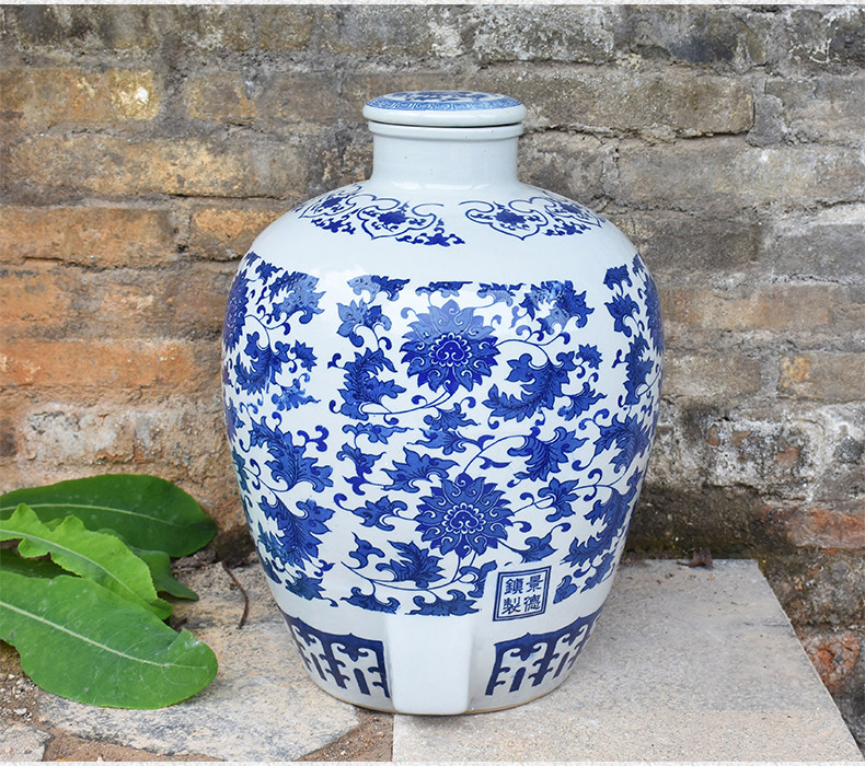 Jingdezheen керамические винные подгузники синий и белый фарфоровый пузырьковый бак 10 кит.фунт 50 кит.фунт Запечатанное домашнее вино бутылка печи белый Винный бак