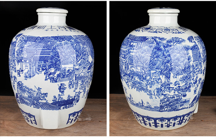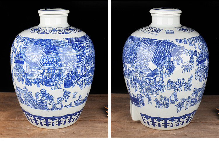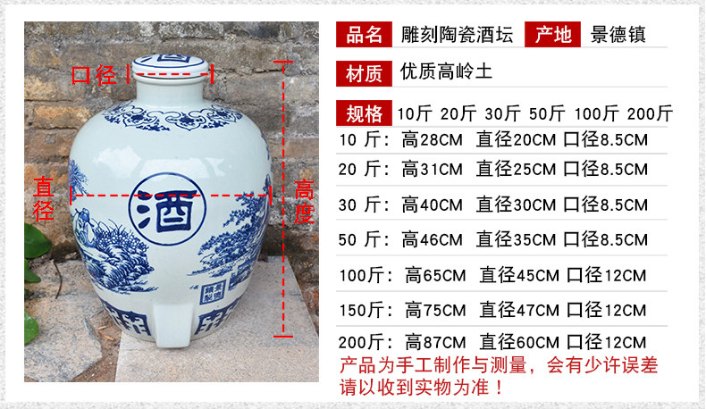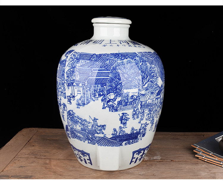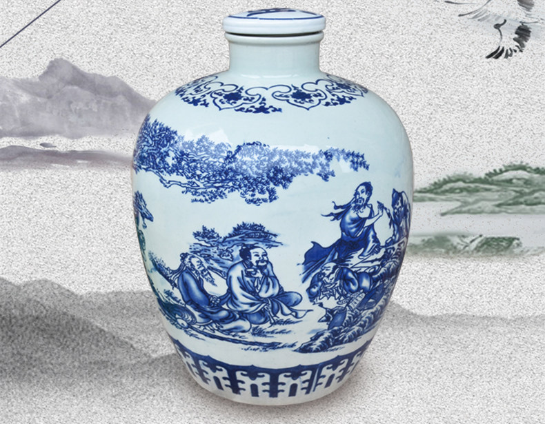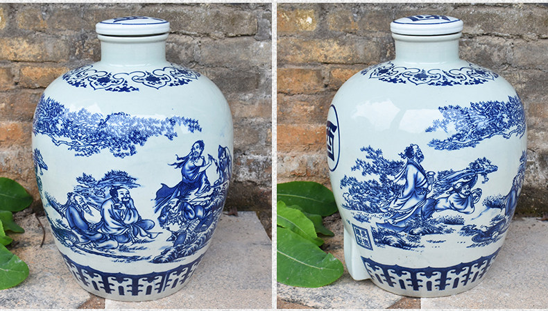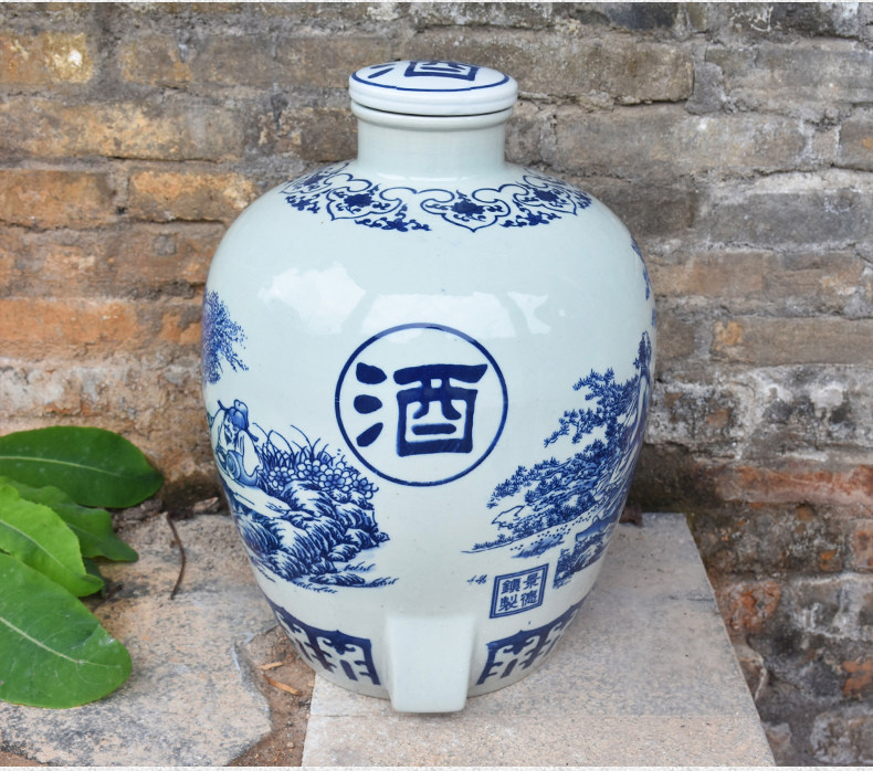 Jingdezheen керамические винные подгузники синий и белый фарфоровый пузырьковый бак 10 кит.фунт 50 кит.фунт Запечатанное домашнее вино бутылка печи белый Винный бак