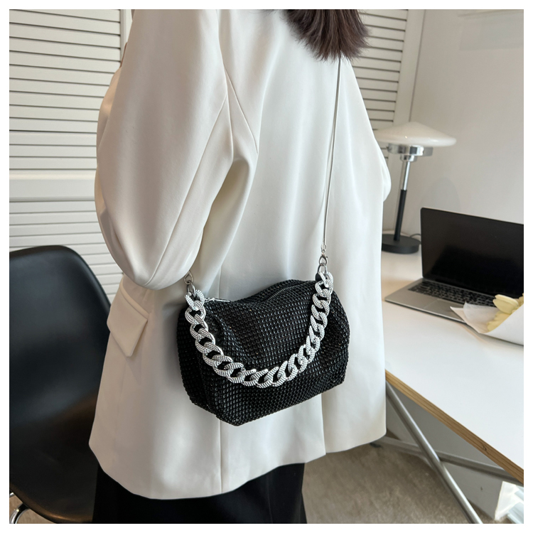 Цепь, расширенная сумка на одно плечо, коллекция 2023, в корейском стиле, инкрустировано бриллиантами, изысканный стиль