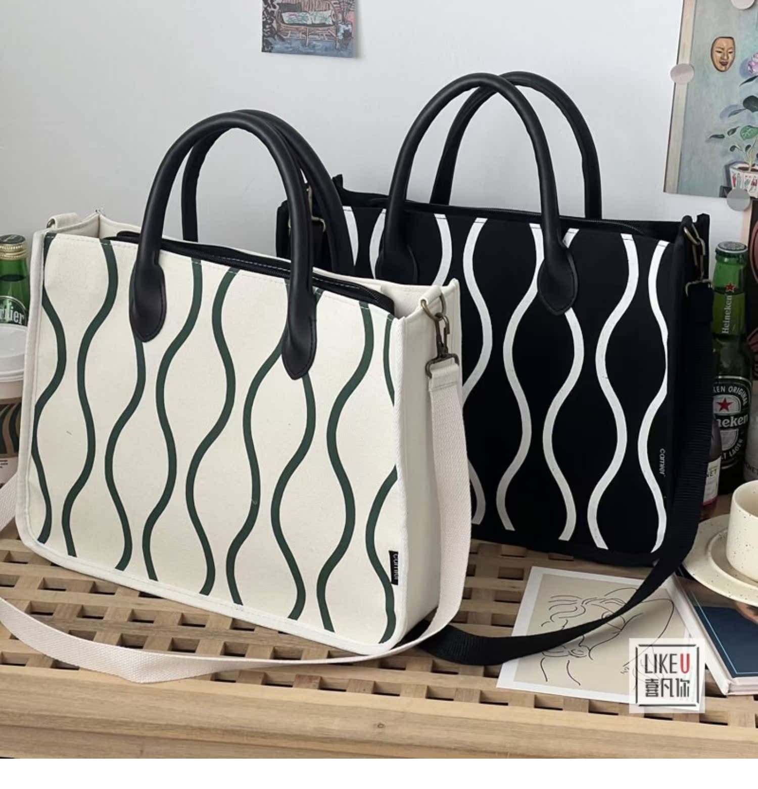 Шоппер с молнией, ноутбук, сумка на одно плечо, ручной работы, для отдыха