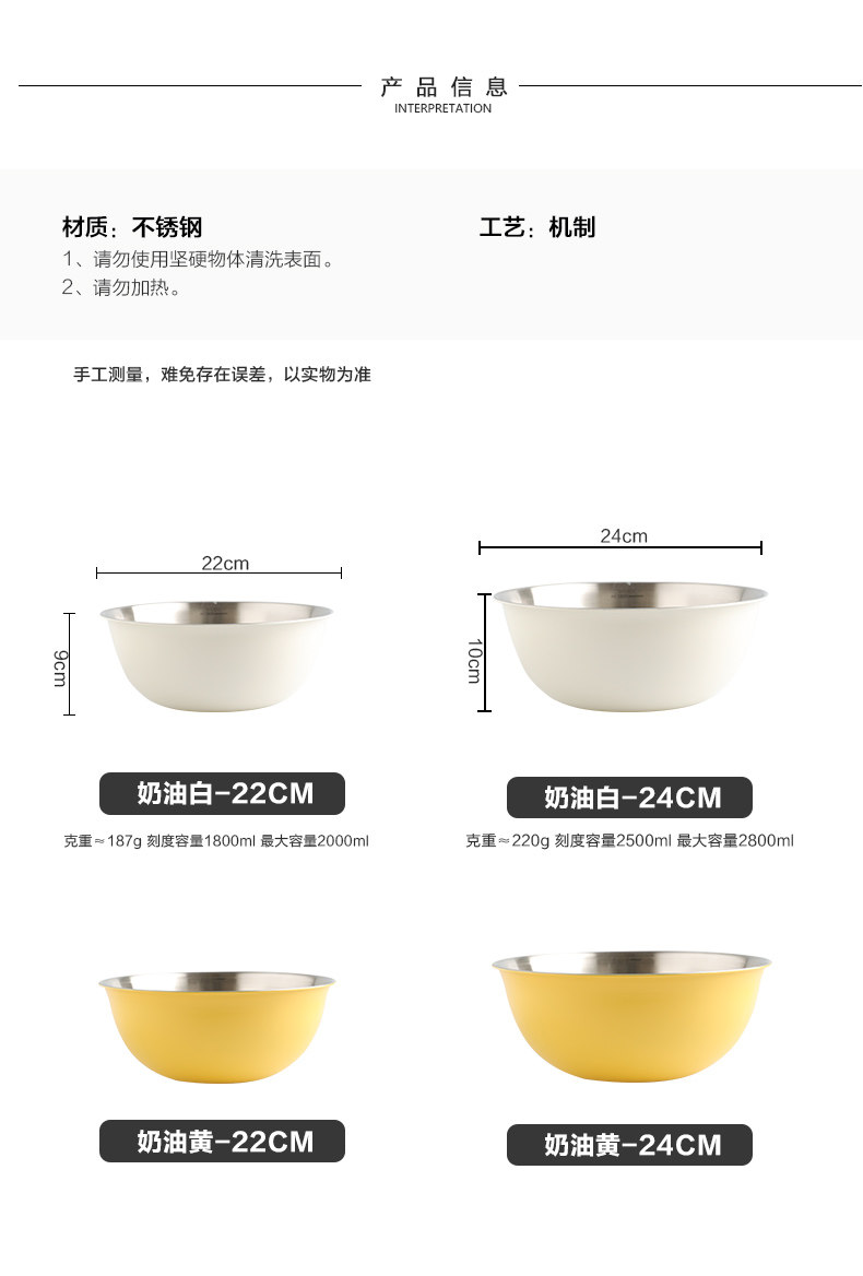 Ленли из нержавеющей стали Pot 304 Food -Крупная кухня выпечка яичных мисок и сливок и бассейна
