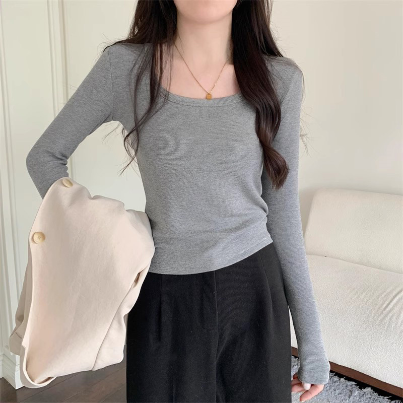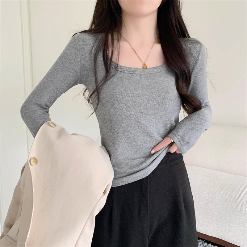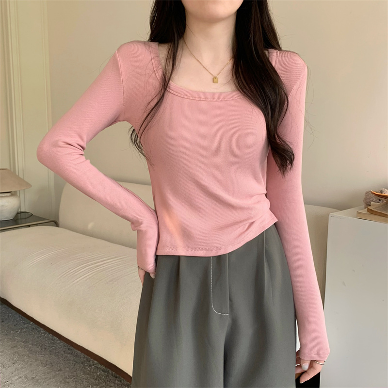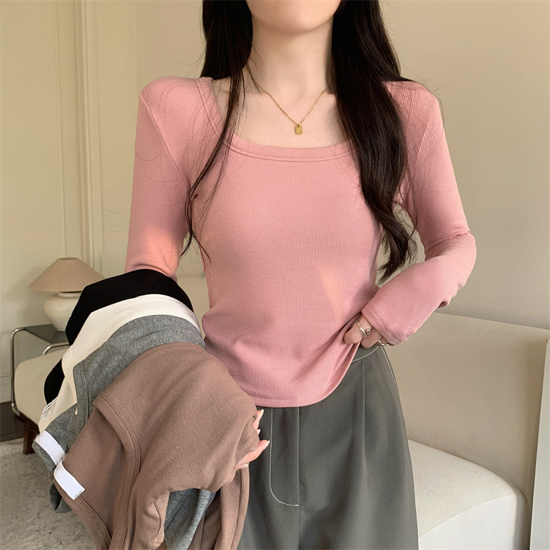 Бархатный удерживающий тепло осенний приталенный приятный телу лонгслив, французский стиль, квадратный вырез