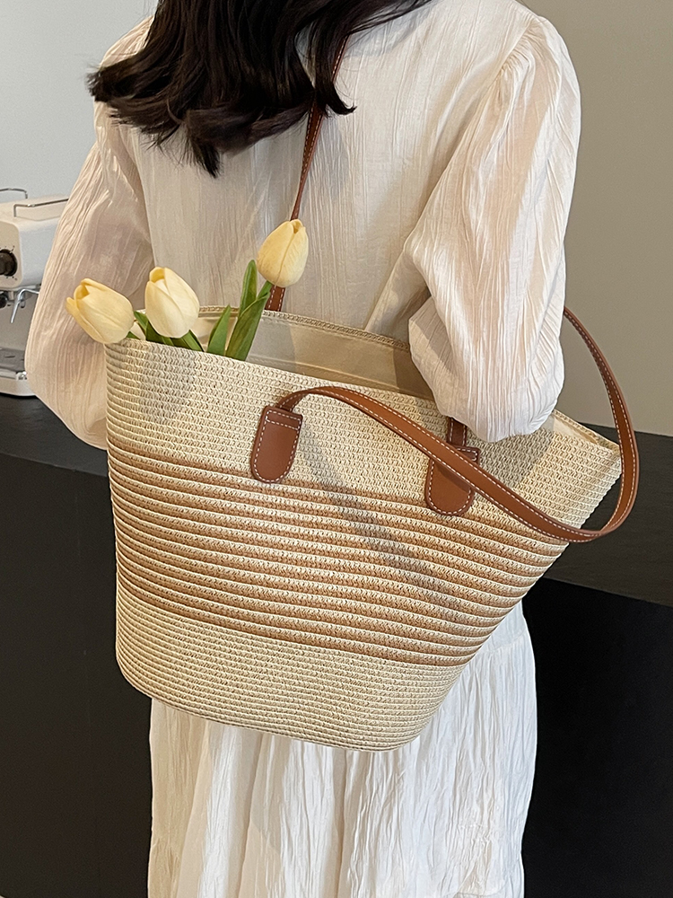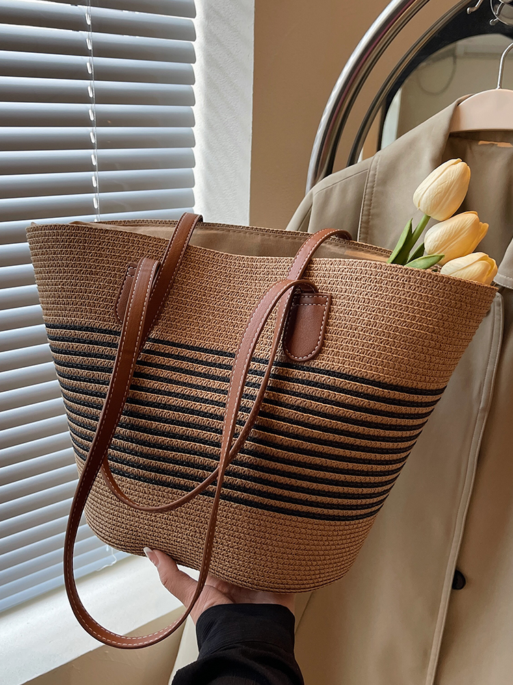 Соломенная вместительная и большая сумка через плечо, расширенная пляжная плетеная сумка на одно плечо, премиум класс