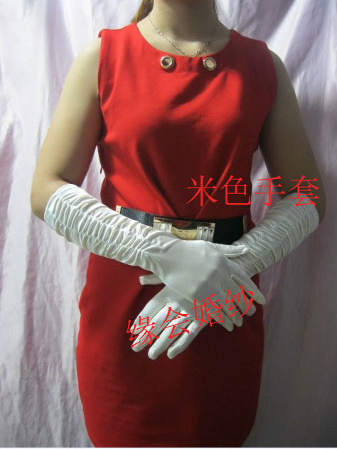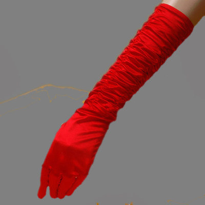 Красный Сатин Ла Зу длинный фасон имеет Толстое свадебное платье перчатки женский Показать перчатки новый мать зимний перчатки