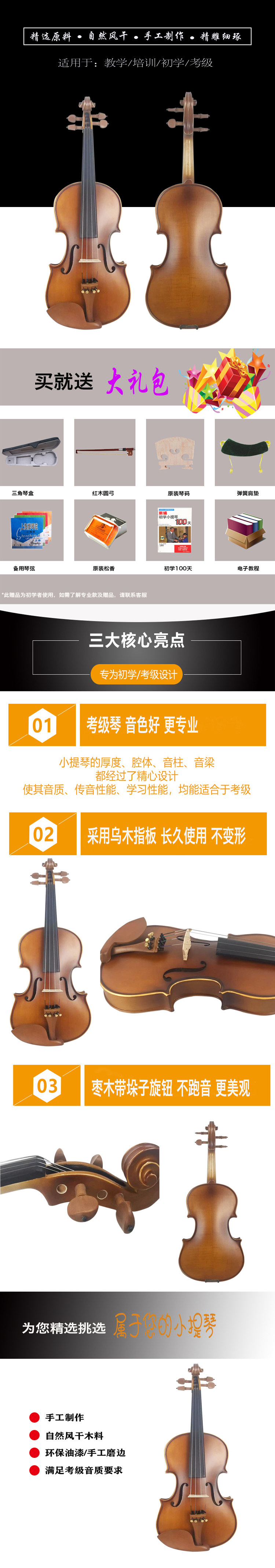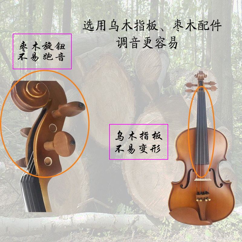 Полностью ручная работа Матовая скрипка полностью Скрипка с твердым древесиной детские Взрослые аксессуары для пианино Jujube