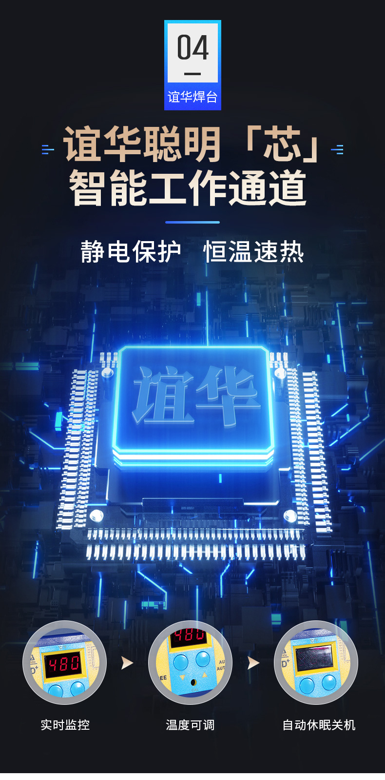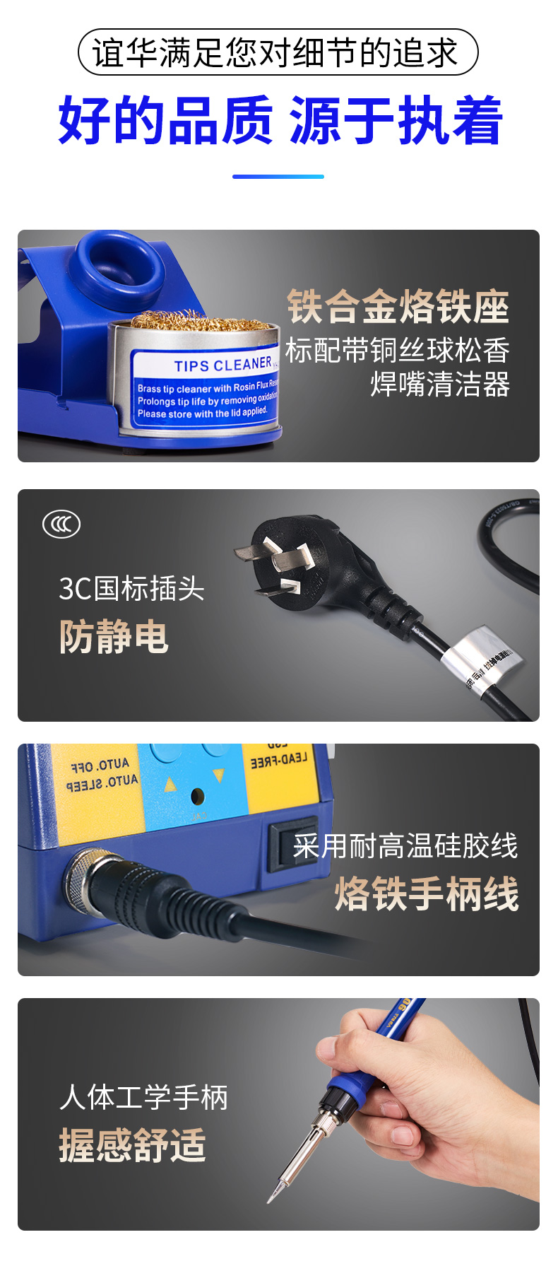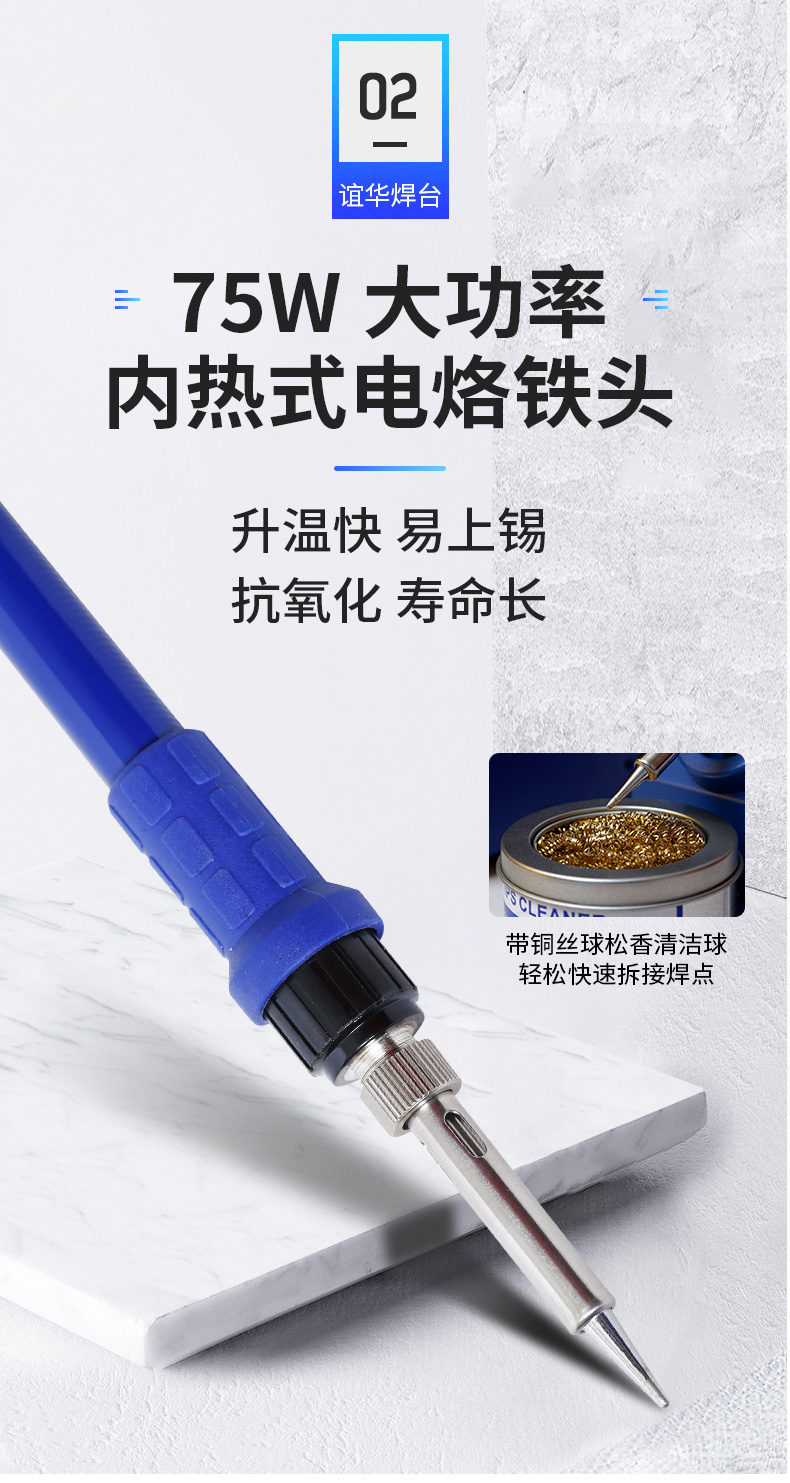 2. Мощный дизайн, быстрая температурная компенсация, подходит в течение длительного времени высокая Сварка в теплом состоянии подходит для сварки больших и малых паяных соединений.Кроме обычных паяльных жало, она также может быть оснащена более толстыми паяльными жалами, такими как серии B и K.