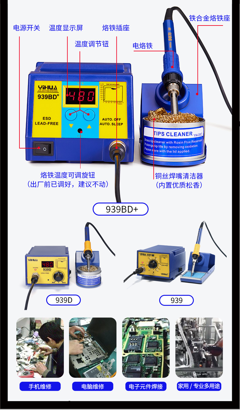 Паяльная станция с постоянной температурой YH-939D(Импортное ядро) Параметры работы паяльника