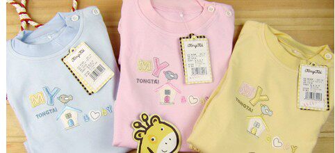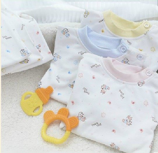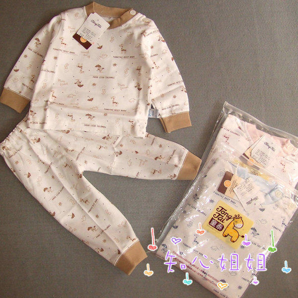 Тонгтай 1767 чистый хлопок на младенца хлопок Свитер A20 детские Яркая рубашка плечо с застежкой Футболка Брюки детские Нижнее белье два наборы