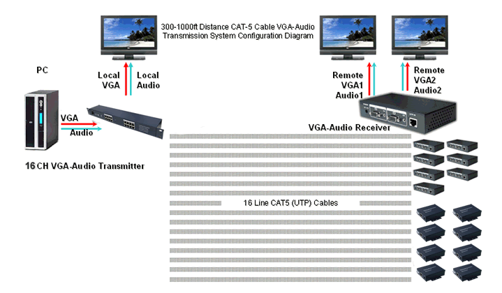 1-16 стойку VGA / звук частота Витая пара Общий передатчик EasyToolTMряд